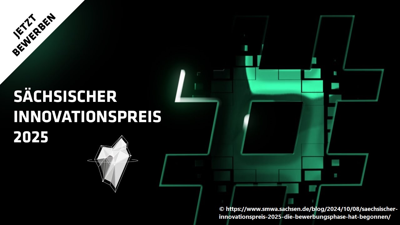 Auch in 2025 lobt das Sächsische Staatsministerium für Wirtschaft, Arbeit und Verkehr den Sächsischen Innovationspreis 2025 aus, um herausragende Leistungen sächsischer Unternehmen zu würdigen.